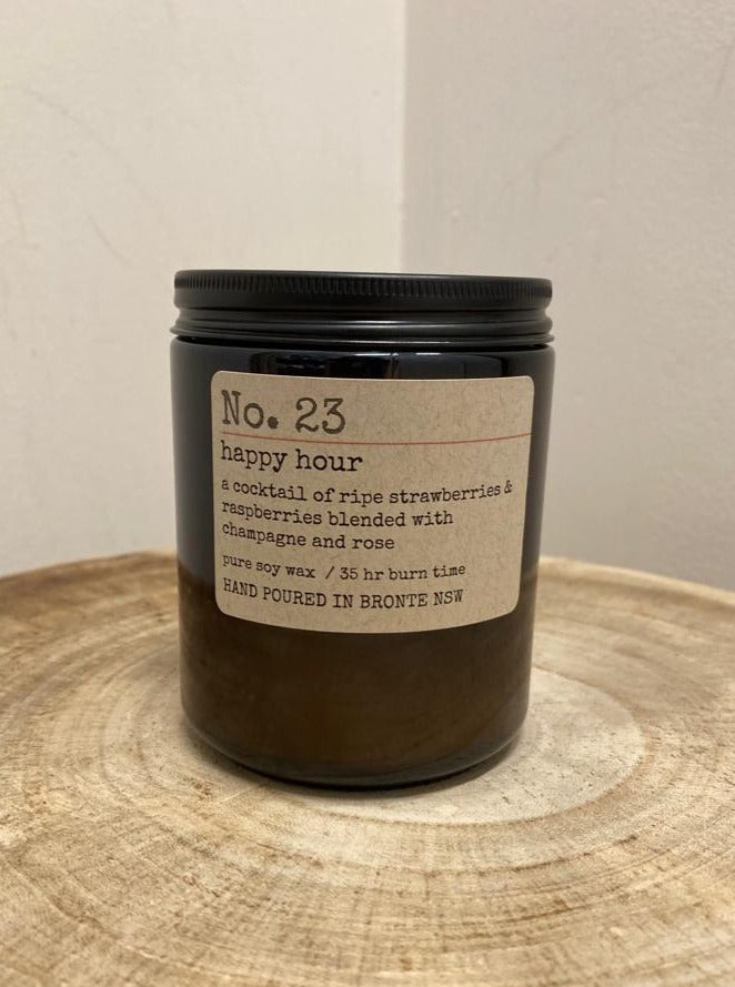 Happy Hour hand poured natural ingredients soy candle. Made locally in Bronte
