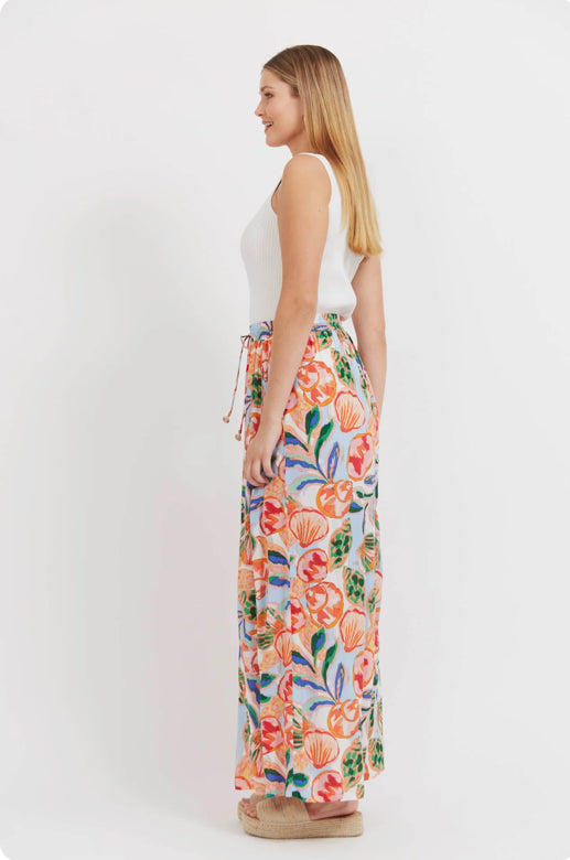 Easy going style with a coastal twist. The Baja Pant boasts a wide palazzo-leg silhouette that flows effortlessly with every step. Featuring an encased tie waist, adorned with delicate shell-inspired charms - a nod to Haven's love for all things coastal. This style is fully lined.
