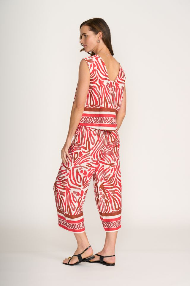 Pure linen pants with soft widish legs, pockets and elasticised back for comfort. Made from a luxurious linen, they feel light and cool on the skin. Worn back with a single-colour tee and some sandals or add a jacket and heels for a dressier occasion. Alternately match back with the Foil Looking Sharp Top as a stand out set.