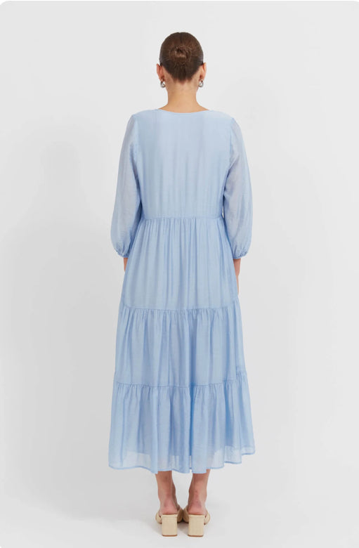 The Baja Button Maxi Dress features a flattering V-neckline, 3/4 sleeves with elasticised cuffs, and a button-through front. Designed to fit true to size, it offers a more fitted feel through the bust, flowing into gathered waist panels and a tiered skirt for effortless movement. Fully lined through the body and finished with internal side pockets, it's a go-to style for days that call for comfort.
