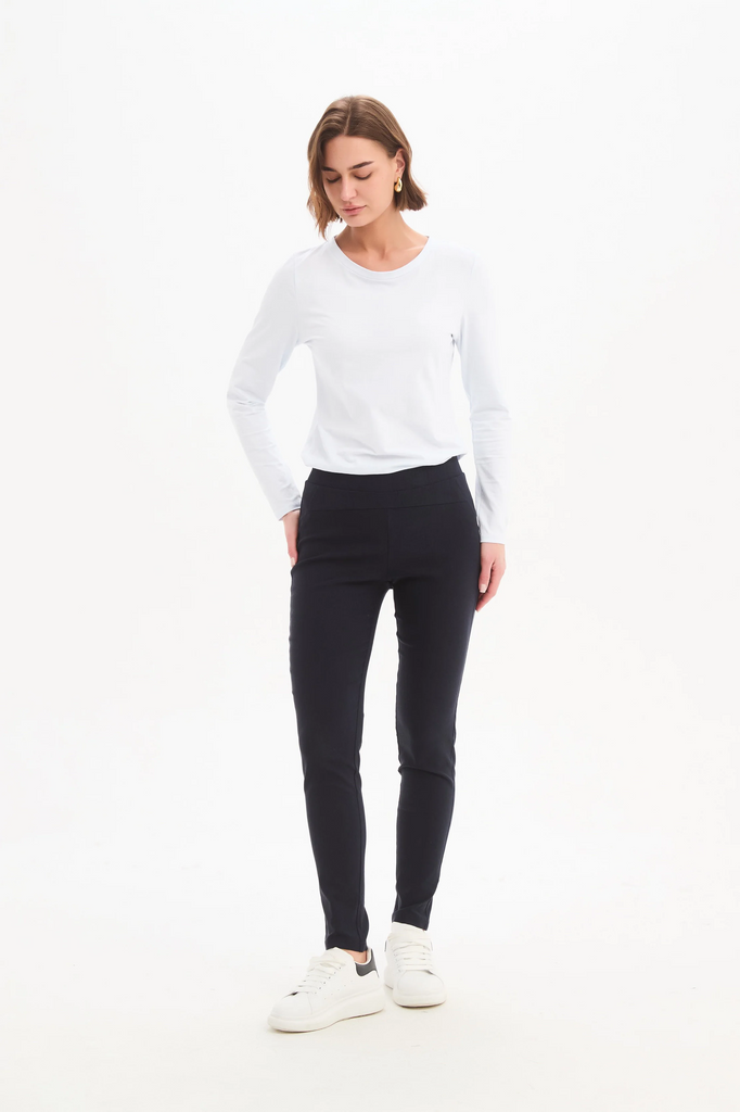 Our signature straight leg pants are back in a fresh and refined fit. The ultimate day to night pants, made from a viscose blend fabric, ensuring comfort and practicality for everyday wear. Featuring a mid-rise waist and a full-length tapered leg, these pants are sure to become a go-to wardrobe staple.